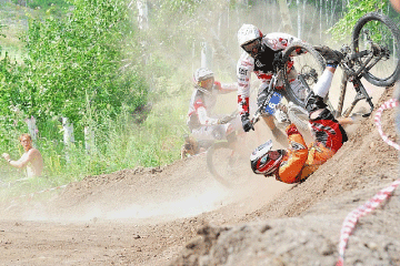 Гонка с одновременным стартом четырех участников по одной и той же трассе. Характер данной гонки предусматривает возможность непреднамеренного контакта между участниками.Трасса проходит по умеренному спуску с постоянным уклоном и включает участки с резкими переходами, буграми, развороты с креном, насыпи, откосы, естественные плоские участки и другие препятствия. Время прохождения дистанции составляет от 30 до 60 секунд. Побеждает гонщик, первым пересекший линию финиша.